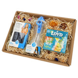 Zestaw prezentowy zamknięty jest w koszu wypełnionym atrakcyjnym materiałem zabezpieczającym oraz ozdobami. Zestaw jest zamknięty zgrzaną folią a dla maksymalnego bezpieczeństwa jest dodatkowo zapakowany w karton. Dzięki temu zestaw prezentuje się elegancko i jest od razu gotowy do wręczenia.