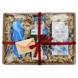 Zestaw prezentowy zamknięty jest w koszu wypełnionym atrakcyjnym materiałem zabezpieczającym oraz ozdobami. Zestaw jest zamknięty zgrzaną folią a dla maksymalnego bezpieczeństwa jest dodatkowo zapakowany w karton. Dzięki temu zestaw prezentuje się elegancko i jest od razu gotowy do wręczenia.