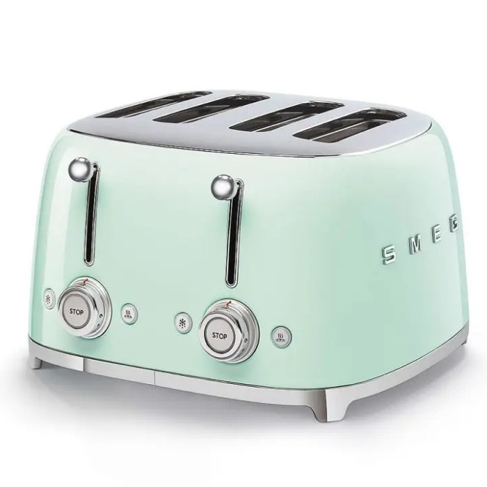 SMEG TSF03PGEU to włoskiej produkcji wysokiej jakości toster, który doskonale sprawdzi się w każdym domu. Toster na cztery kromki SMEG nie tylko charakteryzuje się atrakcyjnym designem, ale również jest bardzo funkcjonalny i stwarza nam ogromne możliwości w kuchni.