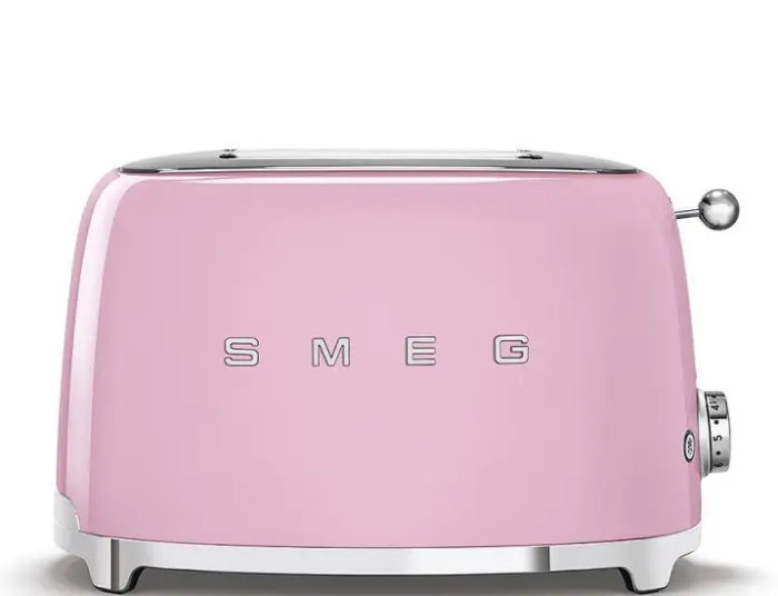 Różowy toster SMEG został zaprojektowany z dbałością o najmniejsze detale. Obudowa urządzenia jest wykonana z trwałej stali lakierowanej, a stabilna podstawa oraz pokrętło regulujące moc grzałki są chromowane. Toster jest wyposażony w ergonomiczną dźwignię aktywującą cykl, a także szerokie kieszenie, które pomieszczą kromki i przekrojone na pół bułki. Całość została utrzymana w wyjątkowej estetyce w stylu lat 50.