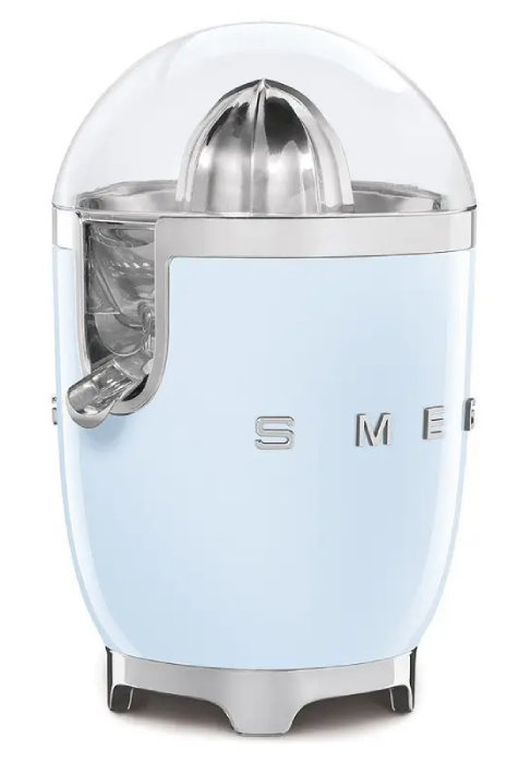 Elektryczna wyciskarka do cytrusów Smeg CJF11PBEU łączy elegancki wygląd i wysoką wydajność. Niebieska wyciskarka SMEG została zaprojektowana z dbałością o najmniejsze detale, a całość została utrzymana w wyjątkowej estetyce w stylu lat 50.