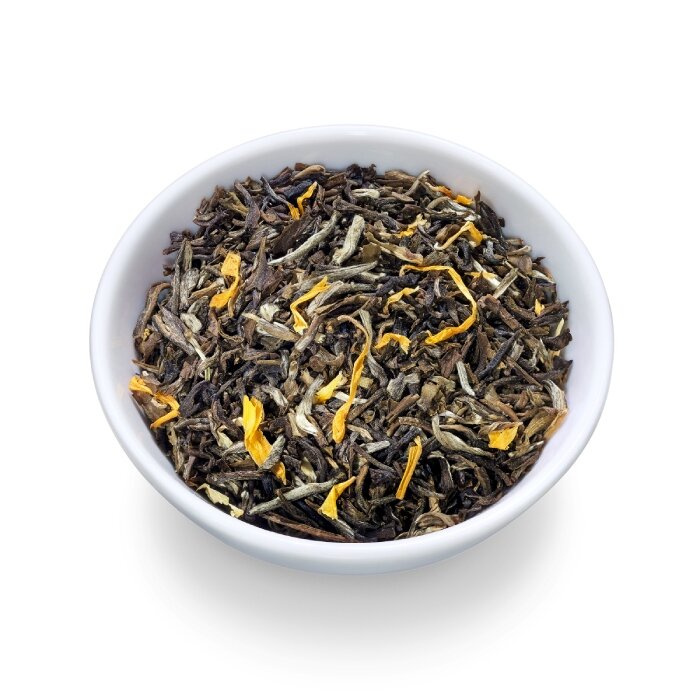 Ronnefeldt Royal White Tea & Cassis to mieszanka białej herbaty o przyjemnym aromacie czerwonej porzeczki z dodatkiem kwiatu nagietka. Taka kompozycja daje nam delikatny owocowy napar o zniewalającym aromacie.