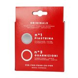 Zestaw trzech silikonowych uszczelek. Do uszczelek, które znajdują się w opakowaniu, dołączone jest również aluminiowe sitko do kawiarki. Uszczelki i sitko pasują do kawiarek Bialetti wykonanych z aluminium o pojemności 12 filiżanek.
