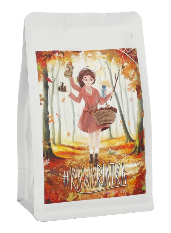 Kawa ziarnista Jesienna Kawariatka to ciemno palony blend arabiki z Brazylii (Sul de Minas) oraz Kolumbii (Cauca). Brazylijskie ziarna odmiany Mundo Novo i Catuai zostały poddane obróbce natural, natomiast kolumbijska arabika odmiany Castillo przeszła obróbkę na mokro.