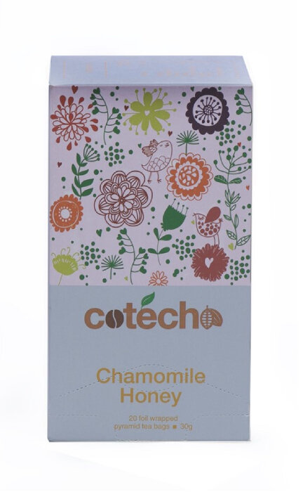 Cotecho Chamomile Honey herbatka rumiankowa z dodatkiem miodu. Kojąca i słodka mieszanka smaków zapewnia odżywczy i relaksujący napar. Odkryj błogi spokój z każdym łykiem tej wyjątkowej herbaty, która łączy w sobie delikatność rumianku ze słodyczą miodu. Idealna na każdą porę dnia, by zanurzyć się w chwilę relaksu i cieszyć się harmonią smaków.