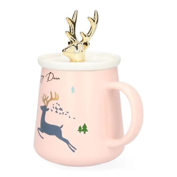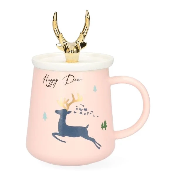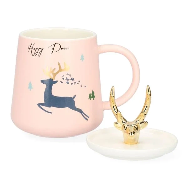 Kubek Homla Rosie z przykrywką w postaci złotej głowy renifera to wyjątkowy towarzysz każdego zimowego wieczoru, idealny do delektowania się gorącą czekoladą lub rozgrzewającą herbatą.