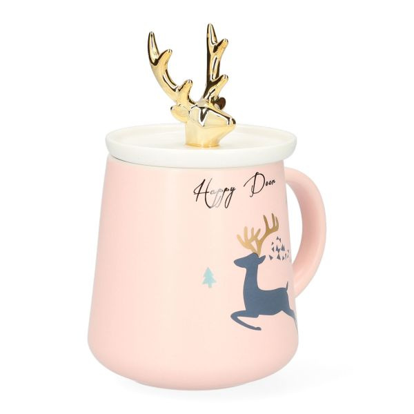 Kubek Świąteczny z przykrywką Homla ROSIE 400 ml - Różowy