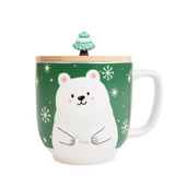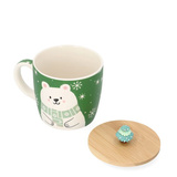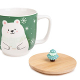 Kubek Świąteczny z uchem Homla MOLDY z Misiem i pokrywką 300ml - Zielony