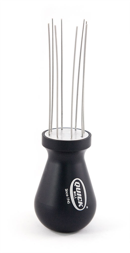 Dystrybutor do kawy Quick Mill to niezwykłe urządzenie, służące do rozprowadzania kawy w kolbie. Dystrybutor wyposażony jest w osiem igieł, dzięki którym pozbędziemy się grudek w zmielonej kawie i uzyskamy jej jednolitą gęstość. Mieszadło posiada stalowy uchwyt w kolorze czarnym.