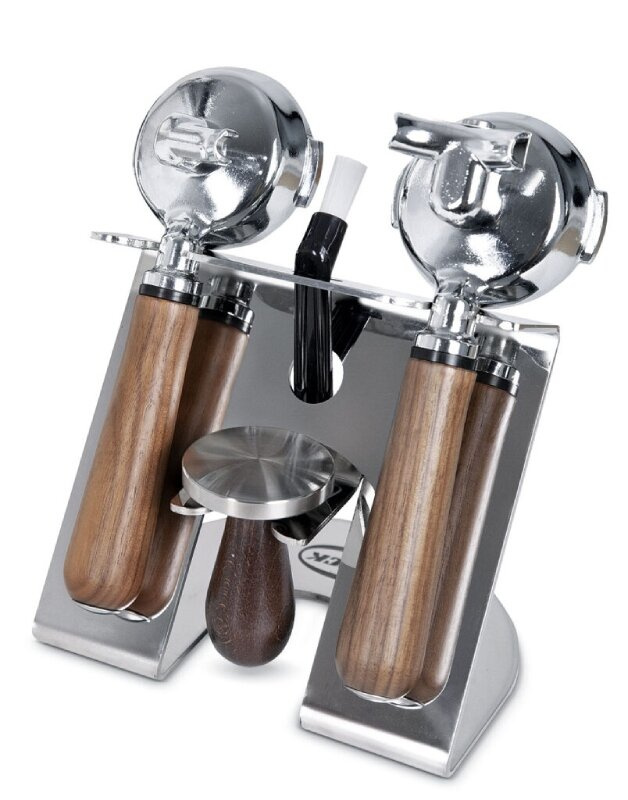 Tablica ekspozycyjna do akcesoriów Quick Mill to praktyczny gadżet na akcesoria kawowe do ekspresu kolbowego. Wykonana z wysokiej jakości stali nierdzewnej pomaga uporządkować i utrzymać miejsce parzenia kawy w czystości i porządku. Elementy wyposażenia ekspresu kolbowego znajdują się w jednym miejscu, pięknie wyeksponowane, nie musimy ich szukać. Na tablicy ekspozycyjnej zmieszczą się dwie kolby, tamper i szczotka do czyszczenia grupy.