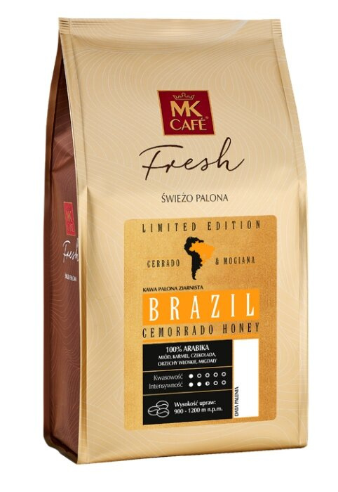 MK Fresh Brazil Cemorrado Honey to średnio palona kompozycja wielu odmian Arabiki z Brazylii, przeznaczona do przygotowania w ekspresach ciśnieniowych i kawiarkach. Ziarna Brazil Cemorrado Honey pochodzą z regionu Mogiana, Cerrado, gdzie dojrzewały na wysokości 900 – 1200 m n.p.m. i zostały poddane obróbce Pulped natural.