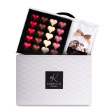 Kolekcja czekoladowych serduszek to mix 20 czekoladowych serduszek w 4 rożnych smakach (słony karmel, czekolada ruby, waniliowe, karmelowe). Całość zapakowana w eleganckie opakowanie ozdobione opaską "Kocham Cię".