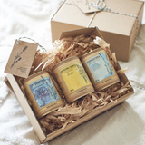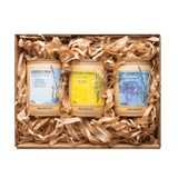 Zestaw zapakowany jest w elegancki szary karton, dopełniony papierowym wypełniaczem i związany naturalnym sznurkiem, co sprawia, że jest również idealnym pomysłem na prezent.