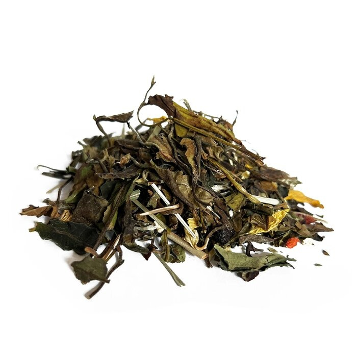 Składniki: herbata biała chińska, goji, burak, hibiskus, trawa cytrynowa, jagoda liofilizowana (3%), brzoskwinia liofilizowana, kwiat słonecznika, aromat naturalny.
