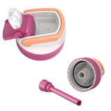 Nakrętka z wygodnym ustnikiem i słomką gwarantuje łatwe i bezpieczne picie, bez obawy o przeciekanie czy rozlanie. To idealne rozwiązanie dla dzieci, które są w ciągłym ruchu. Słomka pochylona pod odpowiednim kątem pozwala na picie bez przechylania głowy. Pociągnij górną nakładkę ochronną, żeby odsłonić ustnik. Dzięki zagiętej słomce wypijesz swój napój do ostatniej kropli.