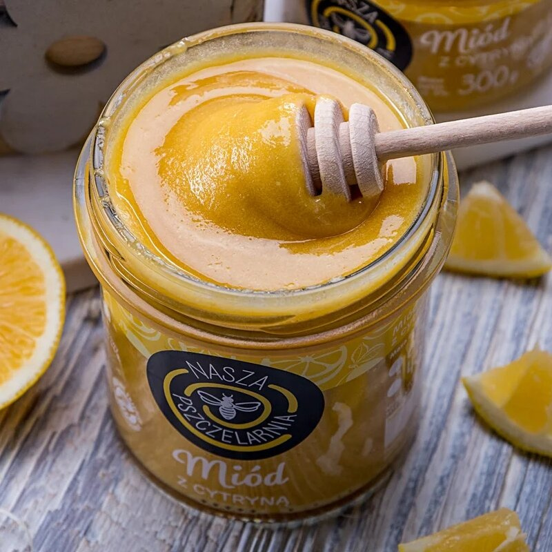 Miód z cytryną nie zawiera konserwantów, sztucznych barwników, cukrów czy innych substancji słodzących, co czyni go odpowiednim produktem dla dzieci. Miód jest zdrowym zamiennikiem słodzików. Świetnie się sprawdzi jako dodatek do herbaty i innych napojów np. lemoniady oraz różnych dań. Słoik zawiera 420 g miodu nektarowego wielokwiatowego o kremowej konsystencji z dodatkiem liofilizowanej cytryny.