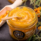 | Miód nektarowy wielokwiatowy kremowany 96% | Rokitnik liofilizowany 4% |