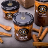 Miód z cynamonem nie zawiera konserwantów, sztucznych barwników, cukrów czy innych substancji słodzących, co czyni go odpowiednim produktem dla dzieci. Idealny jako dodatek do herbaty, pieczywa czy deserów. Miód z cynamonem to także sprawdzony sposób na urozmaicenie śniadaniowych musli czy jogurtów, nadając im wyjątkowego, korzennego aromatu. Słoik zawiera 420 g miodu nektarowego wielokwiatowego o kremowej konsystencji z dodatkiem cynamonu.
