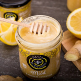 Miód z cytryną i imbirem nie zawiera konserwantów, sztucznych barwników, cukrów czy innych substancji słodzących, co czyni go odpowiednim produktem dla dzieci. Miód jest zdrowym zamiennikiem słodzików. Świetnie się sprawdzi jako dodatek do herbaty i innych rozgrzewających napojów oraz różnych dań. Słoik zawiera 420 g miodu nektarowego wielokwiatowego o kremowej konsystencji z dodatkiem liofilizowanej cytryny i imbiru.