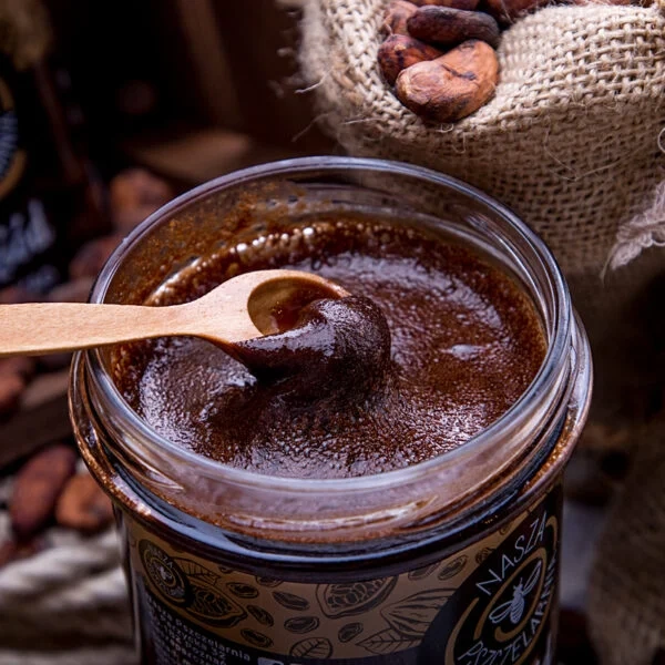 Połączenie miodu z kakao jest nie tylko smaczne, ale ze względu na liczne właściwości prozdrowotne jest wsparciem dla organizmu. Miód z kakao jest bogaty w magnez i antyoksydanty. Wspiera mózg, serce i układ nerwowy, a także pomaga w walce ze stresem i zmęczeniem. Idealny dla dzieci jako zdrowy krem czekoladowy.