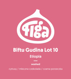 Figa Coffee Etiopia Biftu Gudna Lot 10 to jasno palona arabika Single Origin z Etiopii przeznaczona do przelewowych metod parzenia. Jej ziarna rosną na wysokości 1910 m n.p.m. w regionie Agaro i przechodzą obróbkę na mokro. Nazwa kooperatywy Biftu Gudina pochodzi z języka amharskiego i oznacza "promień rozwoju". Spółdzielnia została założona w 2012 r. w Agaro w strefie Jimma w zachodniej Etiopii. Należy do niej ok. 150 miejscowych drobnych rolników. Warunki naturalne zapewniają im żyzne gleby i duże wysokości, co sprzyja uprawom kawy.
