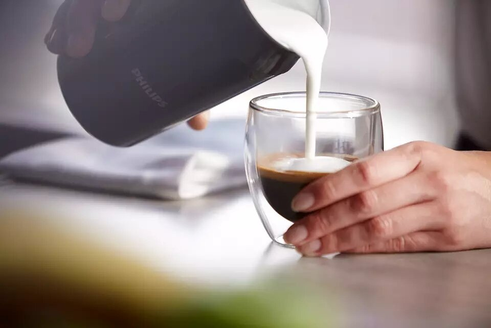 - Spienianie zimnego i gorącego mleka: Dzięki możliwości spieniania zarówno gorącego, jak i zimnego mleka, można wykazać się kreatywnością w przygotowywaniu napojów. Zrób mrożone latte