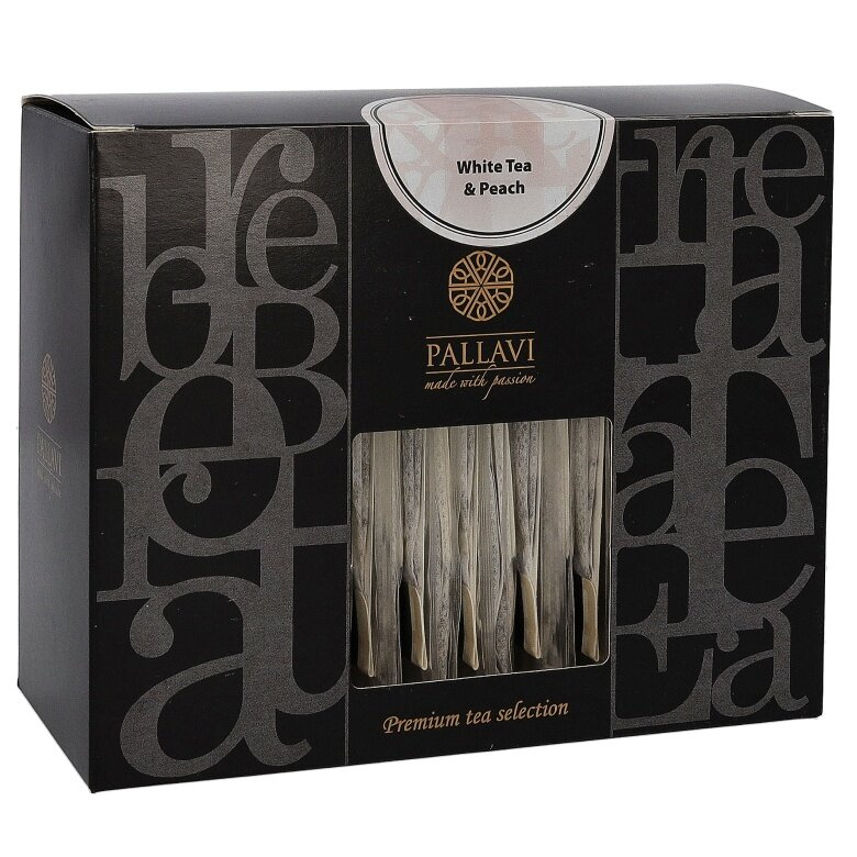 Pallavi White&Peach to połączenie delikatnej białej herbaty oraz brzoskwini, kwiatów nagietka i aromatu jabłka. Słodycz dojrzałej brzoskwini i jabłka wspaniale wzmocniła łagodny smak herbaty, czyniąc ją idealną opcją na popołudniową chwilę przerwy z kubkiem naparu. Herbata została zamknięta w jedwabne podłużne saszetki, a z jednej herbaty przygotujesz 400-500 ml aromatycznego naparu. Jest to idealne rozwiązanie do lokalów gastronomicznych i restauracji, gdzie herbatę podaje się najczęściej w dzbanku.