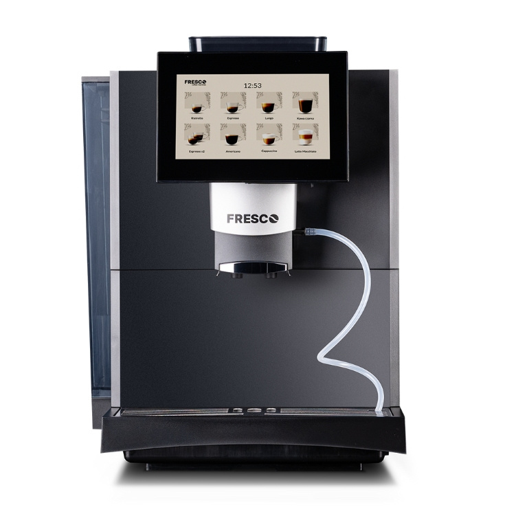 Ekspres do kawy Fresco X65 to profesjonalny automatyczny ekspres do kawy, który przygotuje 80 kaw dziennie i ma stałe podłączenie do sieci wodociągowej. Jego kompaktowy, elegancki, a jednocześnie prosty design harmonijnie wpisze się w przestrzeń mniejszych i większych biur, firm, restauracji, hoteli oraz innych obiektów gastronomicznych. Fresco X65 został stworzony z najwyższej jakości materiałów i ma zaprogramowanych 12 specjałów kawowych takie jak espresso, americano oraz cappuccino czy latte, gorącą wodę czy spienione mleko. W tym urządzeniu jest możliwe również dodanie do 6 nowych receptur napojów.