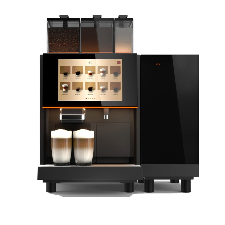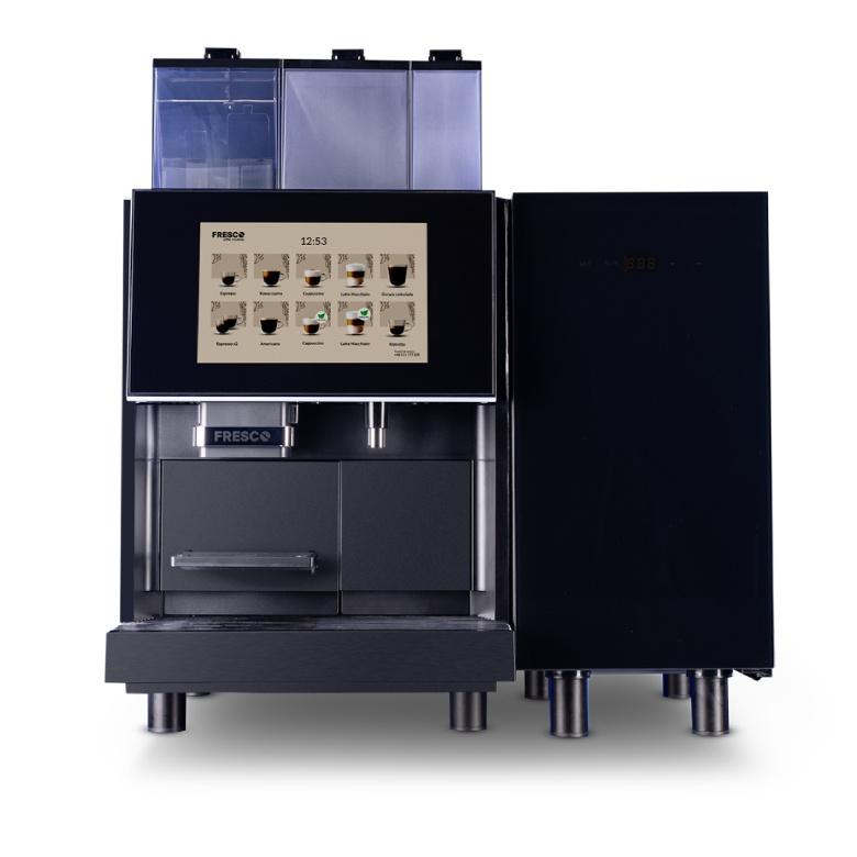 Ekspres do kawy Fresco X580, w komplecie z 5-litrową lodówką na mleko C5, stanowi szczytowe osiągnięcie innowacji w dziedzinie technologii kawowych. Ten zaawansowany zestaw reprezentuje idealny wybór dla miejsc o wysokich wymaganiach, takich jak duże przestrzenie biurowe, sektor gastronomiczny, hotele, restauracje, czy stacje paliw. Jego wyjątkowe cechy i funkcjonalności spełniają oczekiwania nawet najbardziej wymagających użytkowników, czyniąc go niezastąpionym elementem w każdej z tych przestrzeni. Jego zaawansowane funkcje i wytrzymałość sprawiają, że jest w stanie sprostać nawet największemu zapotrzebowaniu, oferując około 300 kaw dziennie. Fresco X580 łączy w sobie wydajność z łatwością użytkowania, tworząc urządzenie, które nie tylko cieszy oko swoją estetyką, ale również zapewnia wyjątkowe doświadczenie degustacyjne. Dodatek lodówki zapewnia higienę i bezpieczeństwo serwowania specjałów mlecznych.