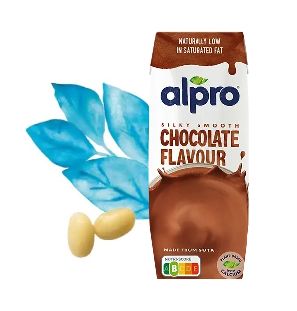 Alpro Sojowe o smaku czekoladowym wzbogacone o dodatek kakao to produkowany w 100% na bazie roślin napój, który nie zawiera laktozy. Jest źródłem wapnia i witamin: B2, B12 i D oraz jest bogaty w białko roślinne. Alpro Sojowe ma niską zawartość nasyconych kwasów tłuszczowych, a ziarna soi z których powstał pochodzą wyłącznie ze zrównoważonych upraw. Tropikalne lasy deszczowe nie cierpią przy uprawie soi dla Alpro. Jest to świetna alternatywa dla mleka. Dodaj go do swojego ulubionej owsianki i rozpocznij dzień ze smakiem.