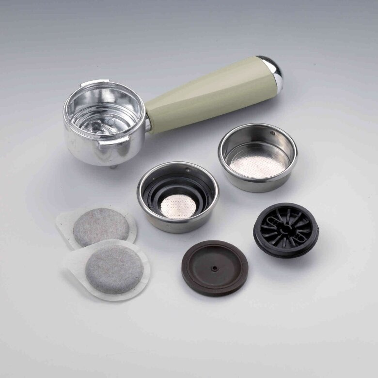 Akcesoria w zestawie: | 2 wymienne sitka (małe i duże espresso), łyżka z miarką i tamperem |