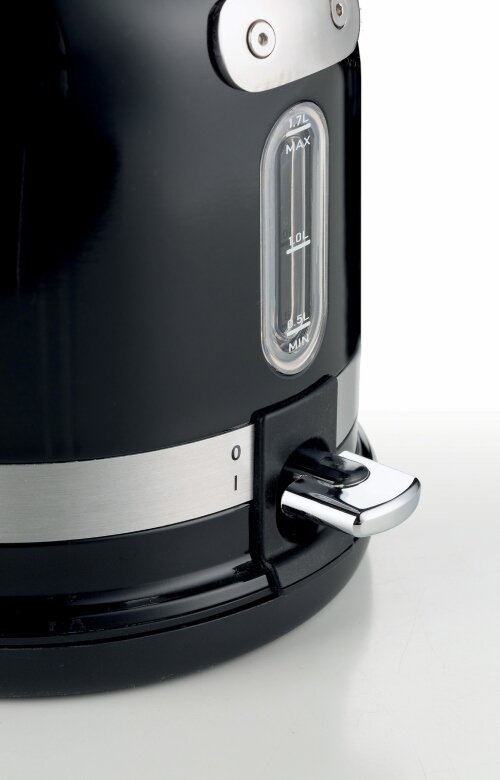 Bezpieczeństwo użytkowania zapewnia automatyczne wyłączanie czajnika po zagotowaniu wody oraz po jego zdjęciu z podstawy. Ergonomiczny, matowy uchwyt nie nagrzewa się, co czyni użytkowanie czajnika bezpiecznym i komfortowym. Delikatne podświetlenie włącznika elegancko akcentuje nowoczesny wygląd urządzenia, dodając mu uroku podczas pracy. Czarny czajnik Moderna 2854/02 Sprawdzi się w każdej kuchni, dodając jej stylu i elegancji, a każde parzenie herbaty i innych napojów stanie się wyjątkowym rytuałem.