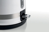 Dodatkową zaletą urządzenia jest ukryta grzałka, która nie tylko ułatwia czyszczenie czajnika, ale także chroni element grzewczy przed osadem z kamienia. Obrotowa podstawa i regulowany przewód, który można schować w podstawie urządzenia, zapewniają komfort i porządek w kuchni. Moderna wykorzystuje podwójny system filtracji z filtrem antywapiennym, który skutecznie oczyszcza wodę z zanieczyszczeń, a także jest łatwy w demontażu i czyszczeniu.