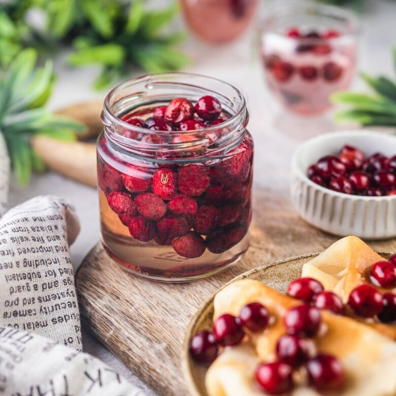 Żurawina w miodzie poddana liofilizacji, zachowuje wszystkie swoje wartości, intensywny kolor oraz smak i jest idealna jako zdrowa alternatywa dla tradycyjnych słodyczy. Doskonale komponuje się z deserami, porannymi musli czy jako dodatek do ciast. Słoik zawiera 220 g żurawiny w miodzie akacjowym.