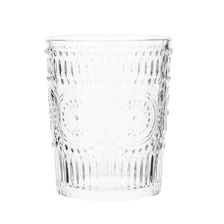 Szklanka Altom Daisy ma dekoracyjne wzory rozmieszczone symetrycznie w górnej i dolnej części kubka, które nie tylko pięknie odbijają światło, ale również są przyjemne w dotyku, dodając unikalnego charakteru podczas użytkowania. Jego wzór to połączenie geometrycznych kształtów i delikatnych, kwiatowych motywów Przezroczyste szkło z którego jest wykonane naczynie pozwala na podziwianie barwy napoju i dodatków w nim umieszczonych, co czyni go idealnym wyborem na eleganckie spotkania towarzyskie, na letnie imprezy na zewnątrz oraz codzienne chwile relaksu.