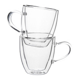 Zestaw dwóch szklanek termicznych Altom Andrea z uchem o pojemności 80 ml, przeznaczonych do małej czarnej kawy. Filiżanki mają klasyczny, owalny kształt, w których kawa prezentuje się wyjątkowo i gustownie. Filiżanki termiczne Altom Andrea są wykonane z podwójnego szkła, przez co dłużej trzymają ciepłą temperaturę napoju. Mają wygodne ucho, ułatwiające użytkowanie. Są przeznaczone do codziennego użytku oraz na specjalne okazje. Filiżanki termiczne ze wzgędu na swoją pojemność są doskonałe do espresso. W zestawie znajdują się dwie sztuki.