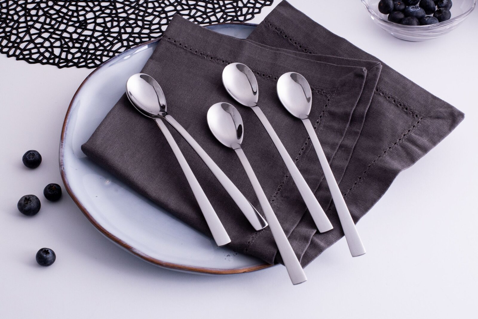 Idealnie wyprofilowany kształt łyżeczek został zaprojektowany z myślą o komforcie – są one doskonale wyważone, co sprawia, że świetnie leżą w dłoni. To czyni je idealnym narzędziem do eleganckiego serwowania deserów, warstwowych kaw czy innych delikatnych przysmaków. Łyżeczki z linii Future wyróżniają się swoim minimalistycznym i estetycznym wyglądem oraz są niezwykle praktyczne – łatwo je wyczyścić i są bezpieczne do mycia w zmywarce. Dostarczane w eleganckich, trwałych opakowaniach, które nie tylko chronią sztućce przed zniszczeniem, ale także świetnie nadają się na prezent, podkreślając klasę i styl podarunku.