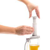 Dzbanek został wykoinany z bezpiecznego dla zdrowia i trwałego tritanu i jest wyposażony jest w innowacyjną pompkę. Pomka, kiedy jest szczelnie przyłożona do zaworu dzbanka lub pokrywki, pozwala na usunięcie powietrza z jego wnętrza poprzez wykonanie kilku prostych ruchów pionowych aż do wyczuwalnego oporu. Dzięki temu procesowi napoje pozostają świeże przez dłuższy czas, a ich smak i wartości odżywcze są chronione przed utlenianiem.