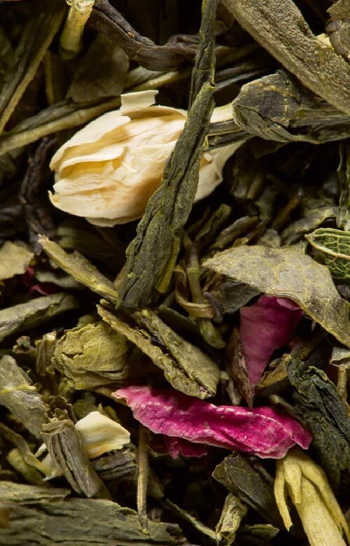 Skład: Zielona herbata i zielona herbata jaśminowa (Camellia sinensis), płatki kwiatów, aromaty (liczi, grejpfrut, brzoskwinia) i olejek różany.