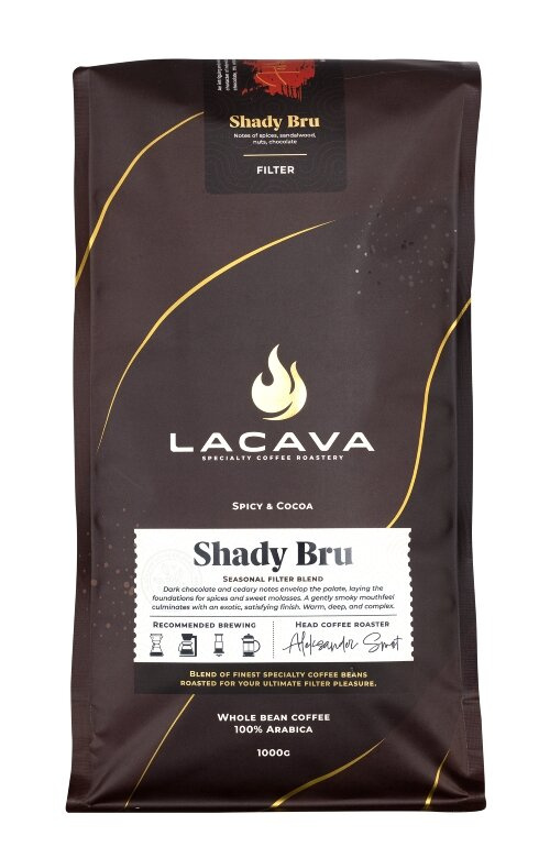 LaCava Shady Bru to sezonowy blend przeznaczony do metod przelewowych, składający się ze starannie dobranych ziaren arabiki Specialty. Kompozycja tej mieszanki zmienia się w zależności od pory roku, zapewniając, że każda partia wykorzystuje ziarna zebrane w szczycie sezonu, co maksymalizuje ich potencjał smakowy.