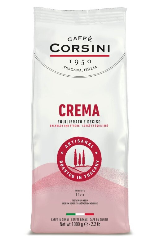 Kawa Caffe Corsini Crema to mieszanka o mocnym smaku z wyraźnie wyczuwalnymi nutami gorzkiego kakao. Intensywny aromat i wspaniała crema na kawie zadowoli najbardziej wymagających miłośników kawy. Corsini Crema doskonale się odnajduje w kawach mlecznych.