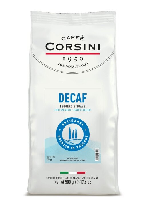 Kawa ziarnista Caffè Corsini Decaf to wysokiej jakości mieszanka ziaren arabiki i robusty, która została poddana procesowi dekofeinizacji i ma zawartość kofeiny nieprzekraczającą 0,10%. zostały starannie wyselekcjonowane, by zapewnić najwyższą jakość specjałów w ekspresach ciśnieniowych i kawiarkach. Specjalnie dobrany proces palenia w stopniu średnim podkreśla w kawie jej wyjątkowe nuty smakowe, które pomimo braku kofeiny zachowują pełnię i bogactwo smaku. Kawa jest bez kofeiny.