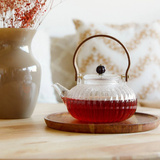 Szklany dzbanek Homla Corrie to elegancki i praktyczny sposób na przygotowywanie ulubionej herbaty o pojemności 550 ml. Przejrzyste, żłobione ścianki dzbanka pięknie eksponują złocistą barwę herbaty i umieszczone w niej dodatki, dodając estetycznego uroku każdemu stołowi. Dzbanek jest to idealne rozwiązanie na leniwe śniadania, spotkania z rodziną i przyjaciółmi oraz imprezy na tarasie. Dzbanek ma drewnianą rączkę.