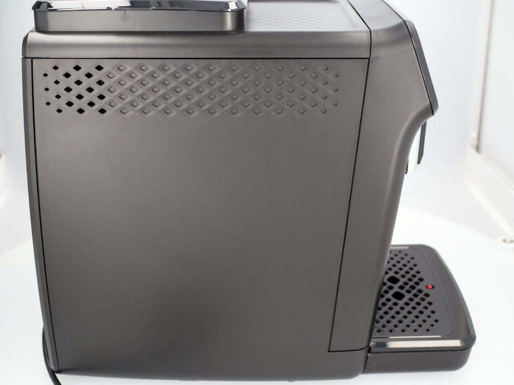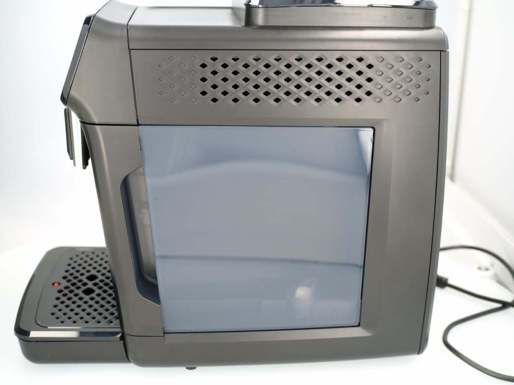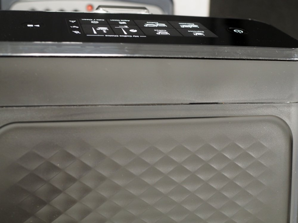 Ekspres posiada delikatne rysy widoczne na zdjęciach na następujących elementach: taca ociekowa, przód i górna krawędź wyświetlacza, pokrywa młynka, rysa na tylnej obudowie.