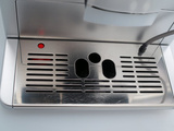 Ekspres posiada znaczne rysy widoczne na zdjęciach na następujących elementach: górna obudowa, pokrywa młynka, pokrywa zbiornika na wodę, taca ociekowa, drzwiczki serwisowe, boczna lewa i prawa obudowa, tylna obudowa, zbiornik na wodę. Naklejka serwisowa na wewnętrznej stronie pokrywy zbiornika na wodę. Rysy oraz odbita taśma na obudowie dodatkowego pojemnika na mleko.