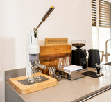 - Zestaw zawiera: komplet do montażu na blacie: dźwignię, portafilter, zbiornik na wodę, drewnianą podstawkę oraz plastikowy ociekacz