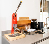 - Zestaw zawiera: komplet do montażu na blacie: dźwignię, portafilter, zbiornik na wodę, drewnianą podstawkę oraz plastikowy ociekacz