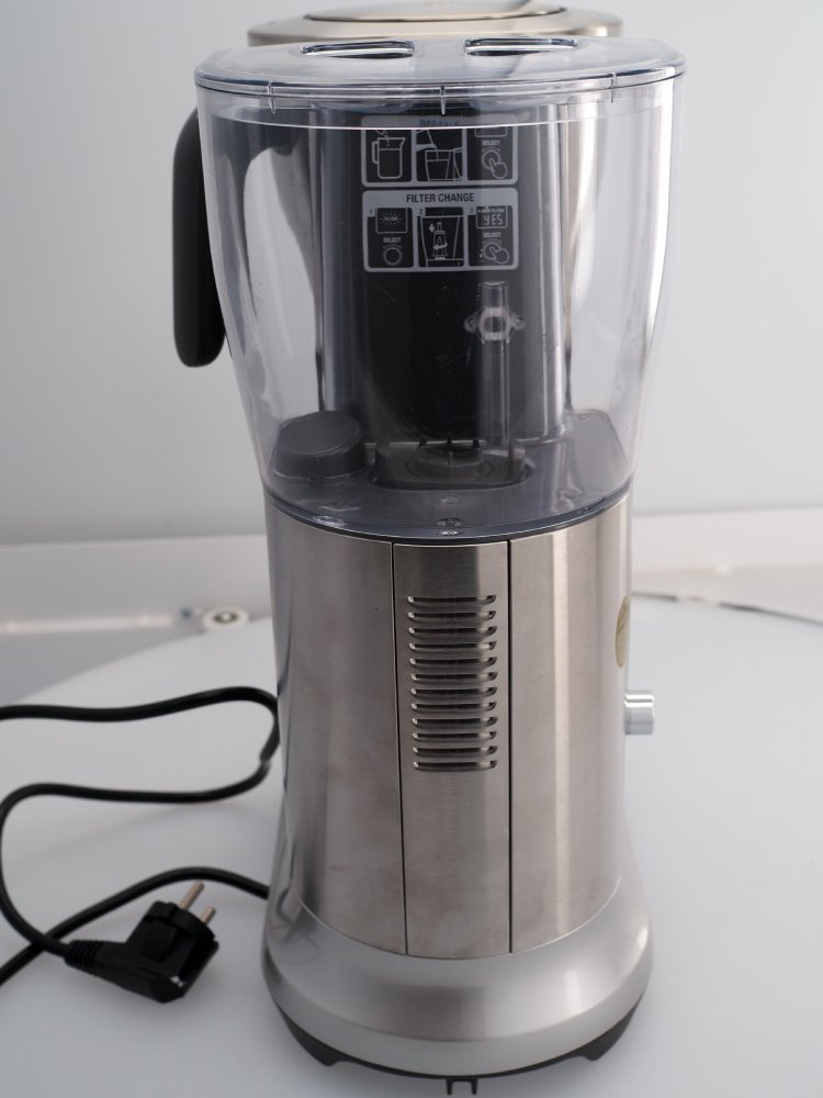 Ekspres posiada znaczne rysy nie widoczne na zdjęciach na pojemniku na wodę. Odprysk widoczny na zdjęciach na płycie grzewczej. Obudowa ekspresu posiada liczne plamy.