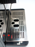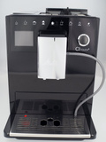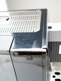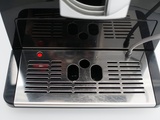 Ekspres posiada znaczne rysy widoczne na zdjęciach na następujących elementach: przednia obudowa przy wylewce kawy, taca ociekowa, tylna i boczna obudowa, drzwiczki serwisowe, pokrywa zbiornika na wodę i ziarna kawy. Ekspres posiada naklejki serwisowe na tylnej obudowie oraz na wewnętrznej stronie pokrywy zbiornika na wodę. Porysowany pojemnik na mleko, rysy nie widoczne na zdjęciach.