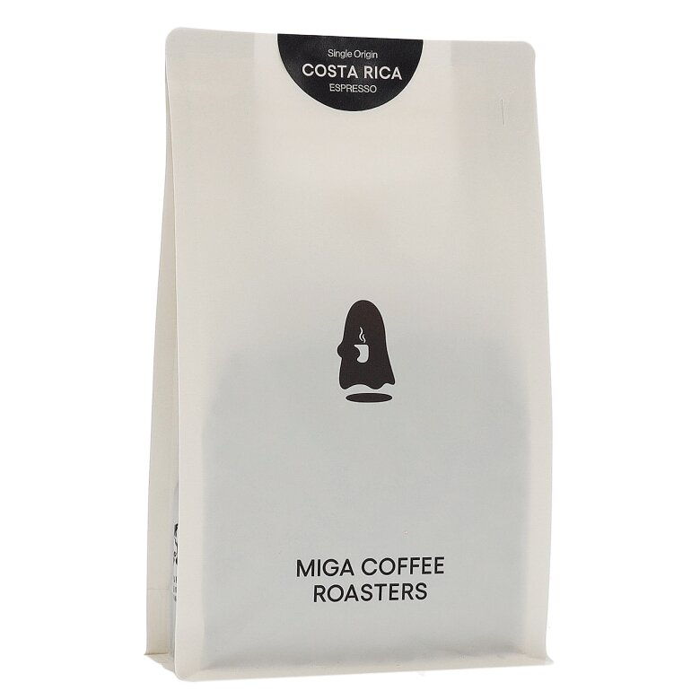Miga Costa Rica Espresso to jednorodna arabika z Kostaryki, która została wypalona w stopniu średnim z przeznaczeniem do ciśnieniowych metod parzenia. Ziarna tej kawy to odmiana Catuai i Caturra, które rosną na wysokości 1300 m n.p.m. w regionie Alajuela, na farmie Hacienda Sonora. Kawa została poddana obróbce metodą Honey i uzyskała 86,5 punktów w skali jakości SCA, przez co zalicza się do kawy jakości Specialty. Opakowanie jest kompostowalne.